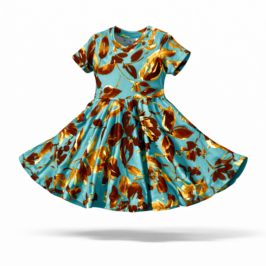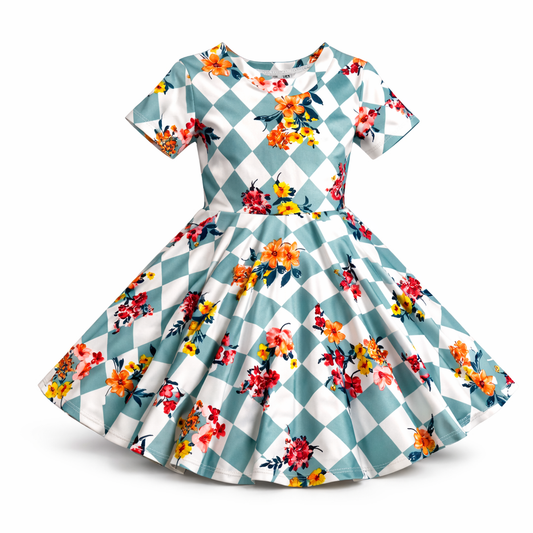 Twirl Dress in Teal Floral Print