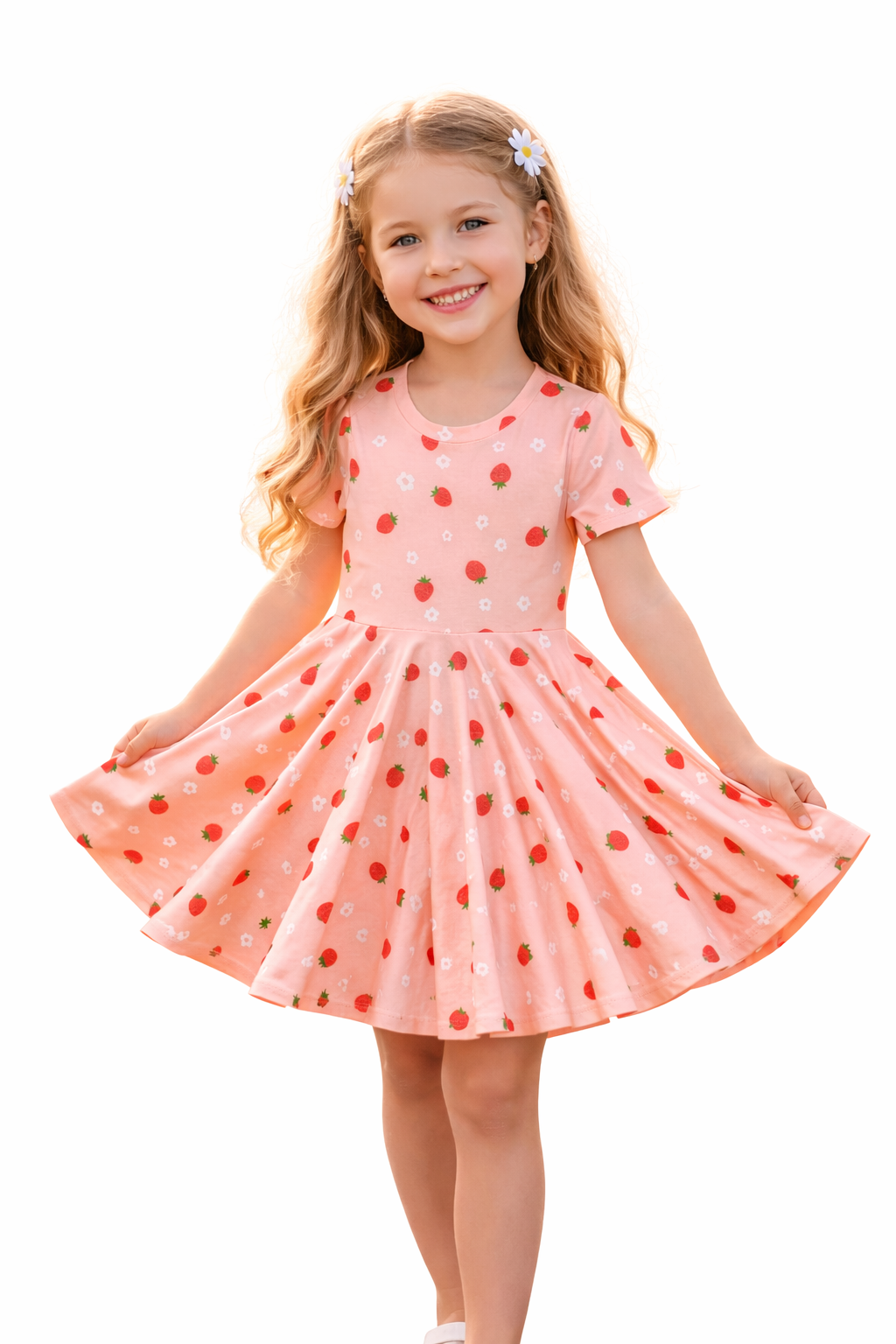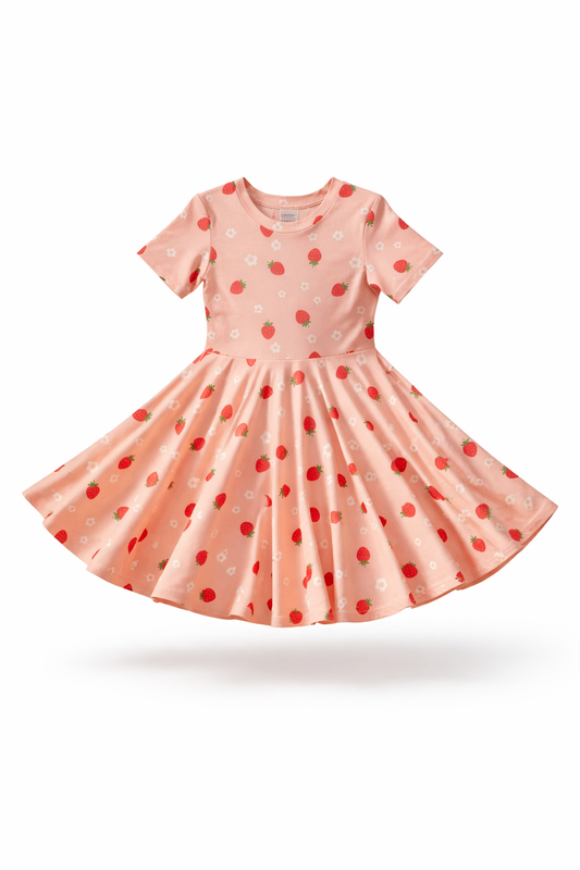 Twirl Dress in Pink Strawberries Print