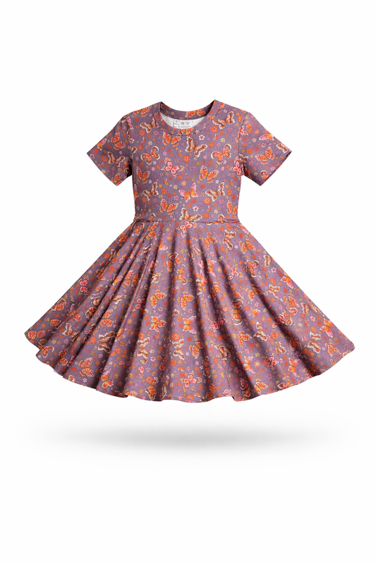 Twirl Dress in Purple Butterflies Print